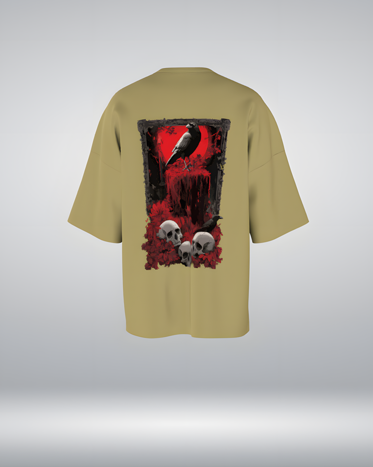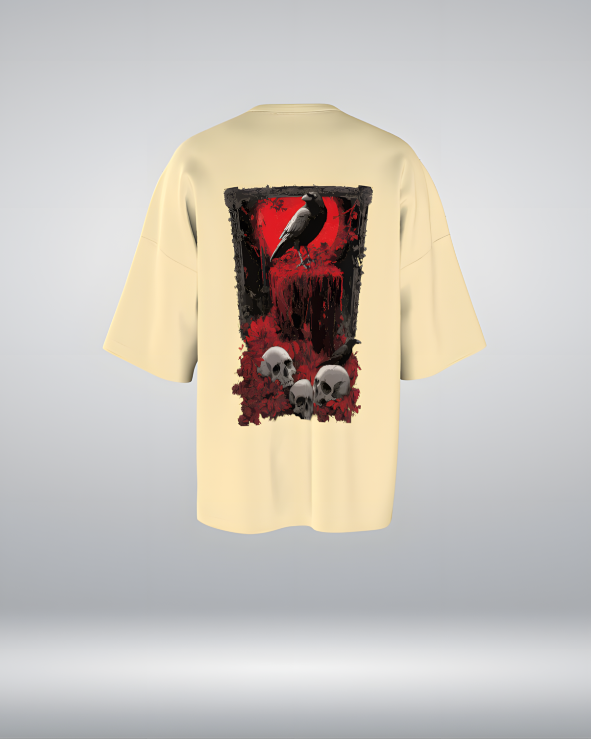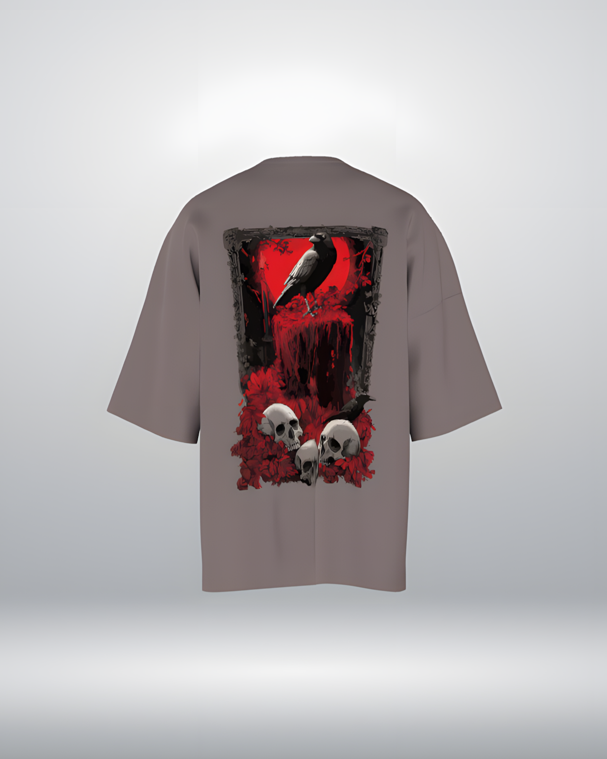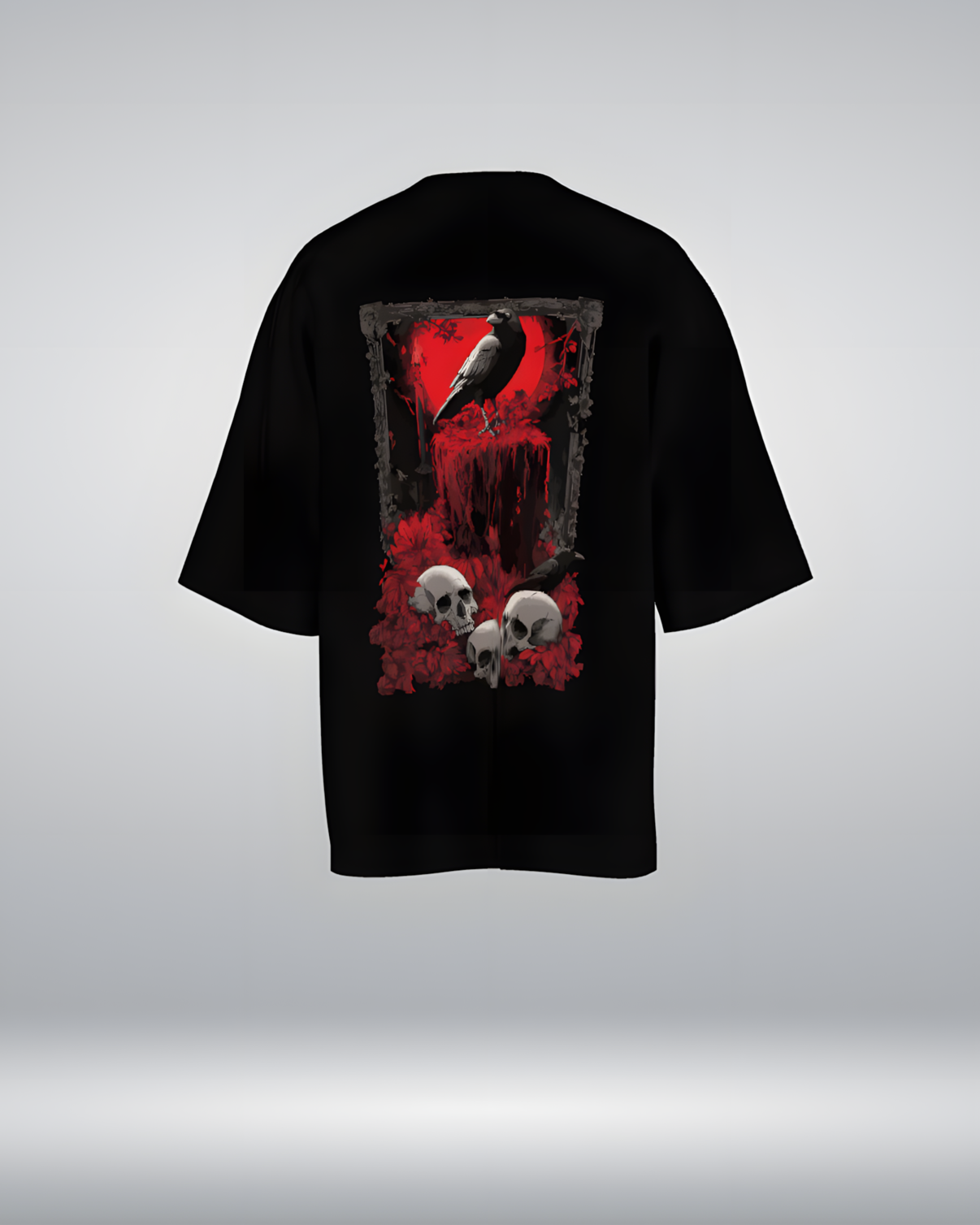 El diseño exclusivo Noche Eterna aporta un toque oscuro, potente y urbano con un estampado que mezcla cuervos, calaveras y tonos intensos, creando una pieza que no pasa desapercibida.